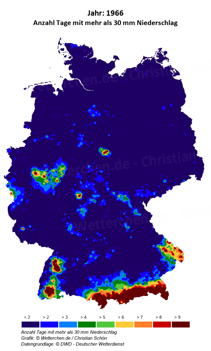 1966 - Anzahl Tage mit mehr als 30 mm Niederschlag