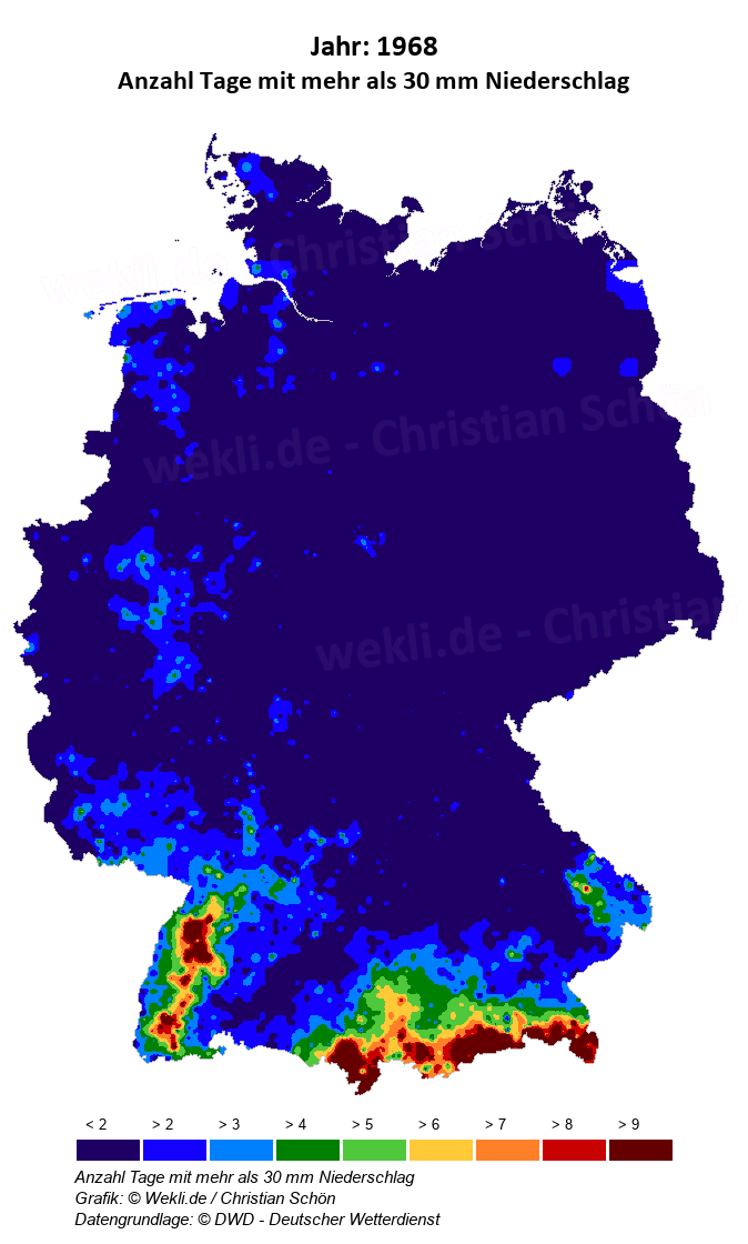 1968 - Anzahl Tage mit mehr als 30 mm Niederschlag