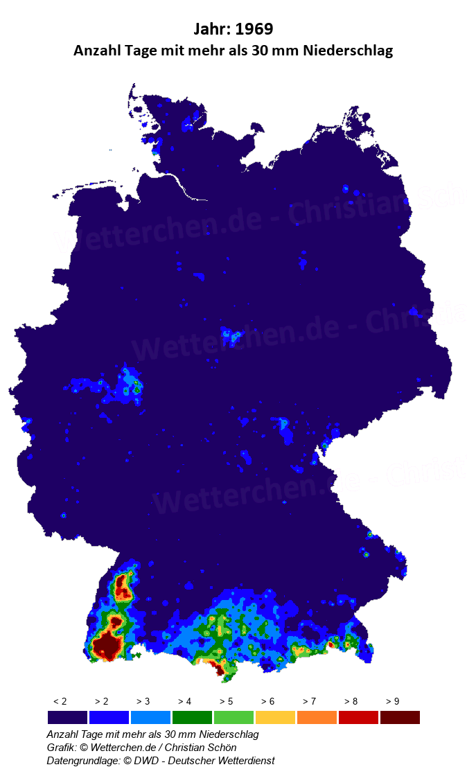 1969 - Anzahl Tage mit mehr als 30 mm Niederschlag
