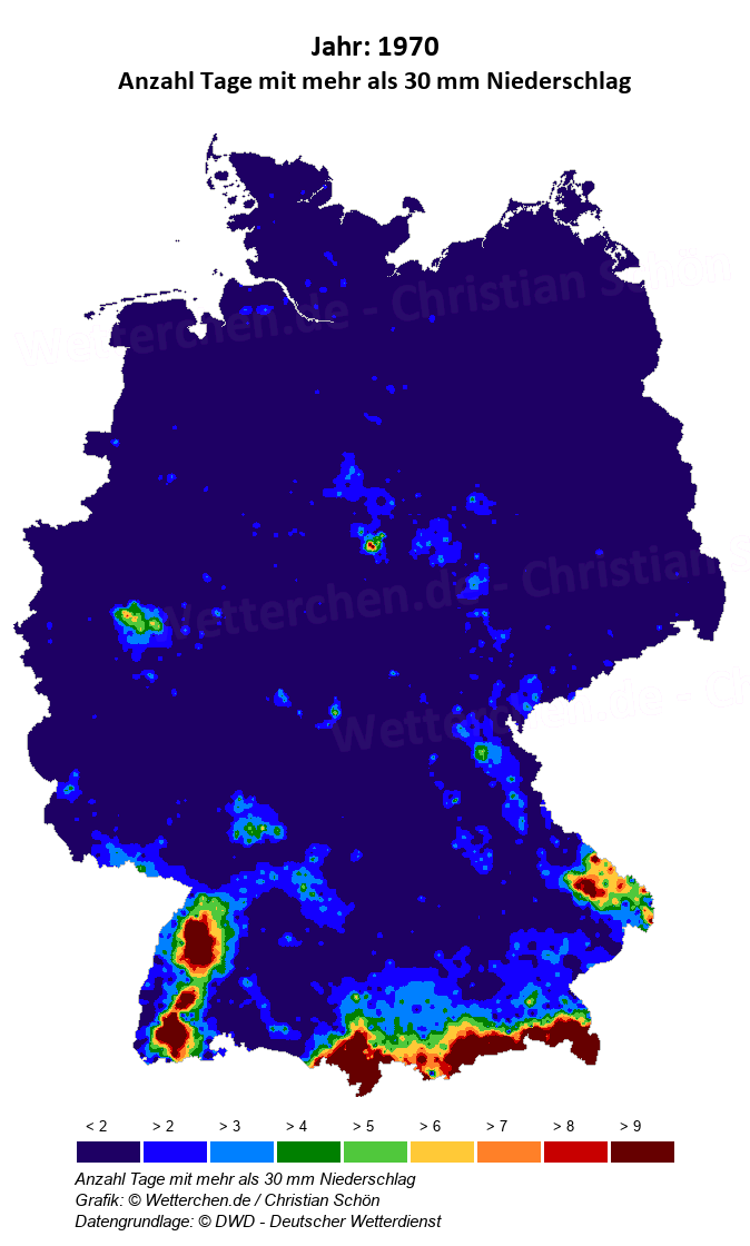 1970 - Anzahl Tage mit mehr als 30 mm Niederschlag