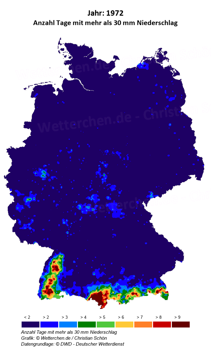 1972 - Anzahl Tage mit mehr als 30 mm Niederschlag