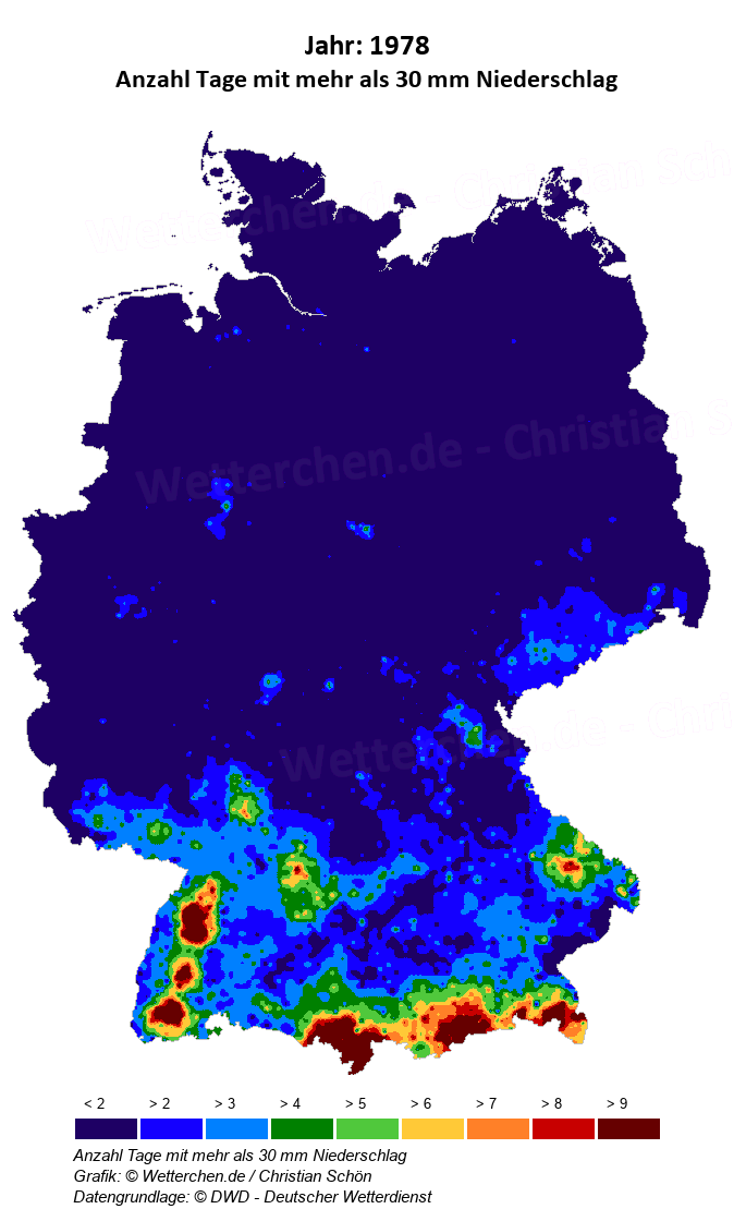 1978 - Anzahl Tage mit mehr als 30 mm Niederschlag