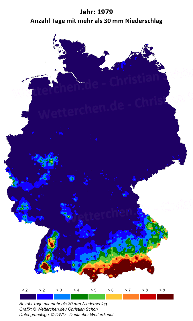 1979 - Anzahl Tage mit mehr als 30 mm Niederschlag
