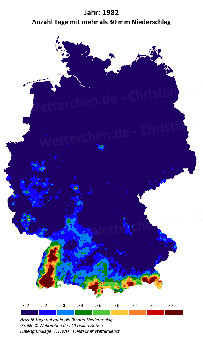 1982 - Anzahl Tage mit mehr als 30 mm Niederschlag