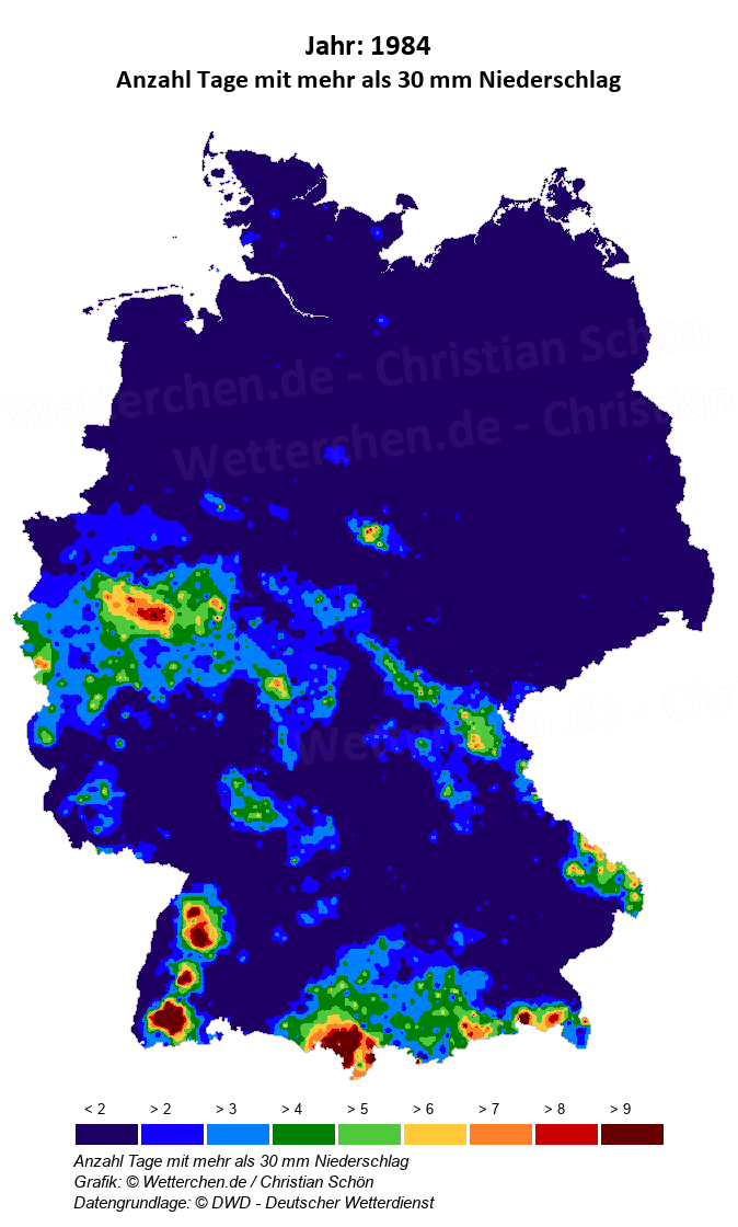 1984 - Anzahl Tage mit mehr als 30 mm Niederschlag