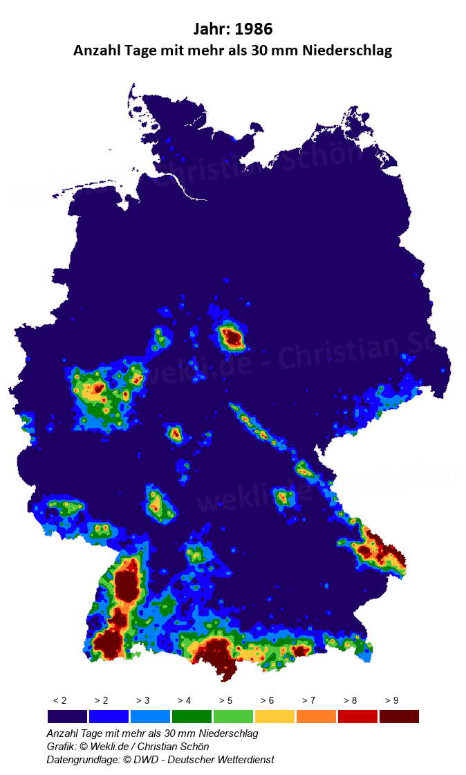 1986 - Anzahl Tage mit mehr als 30 mm Niederschlag
