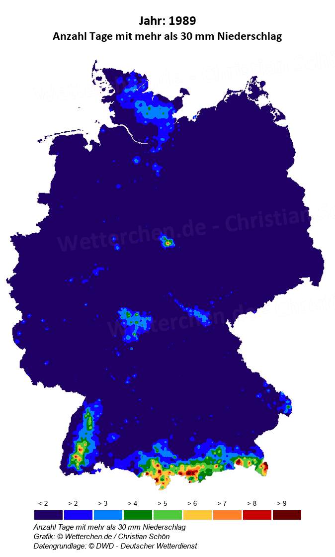 1989 - Anzahl Tage mit mehr als 30 mm Niederschlag