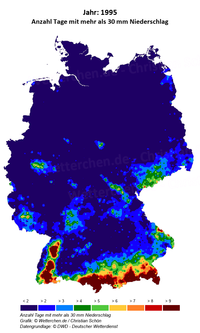1995 - Anzahl Tage mit mehr als 30 mm Niederschlag