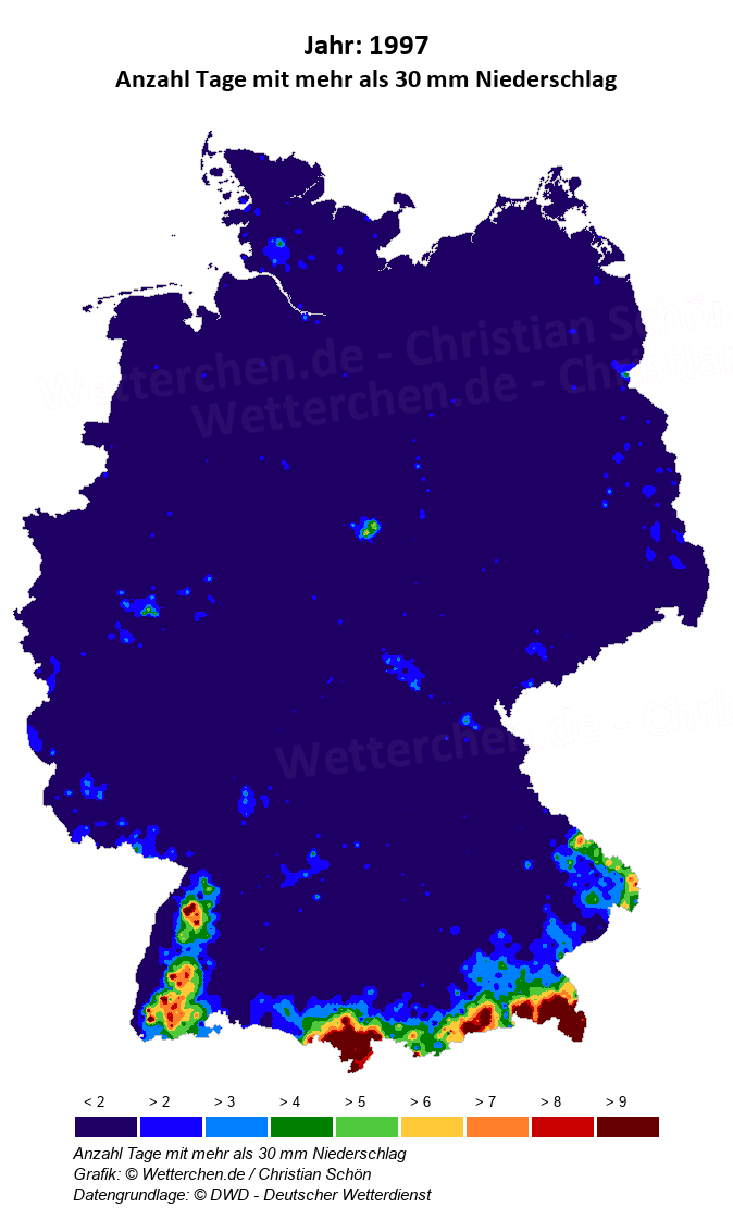 1997 - Anzahl Tage mit mehr als 30 mm Niederschlag