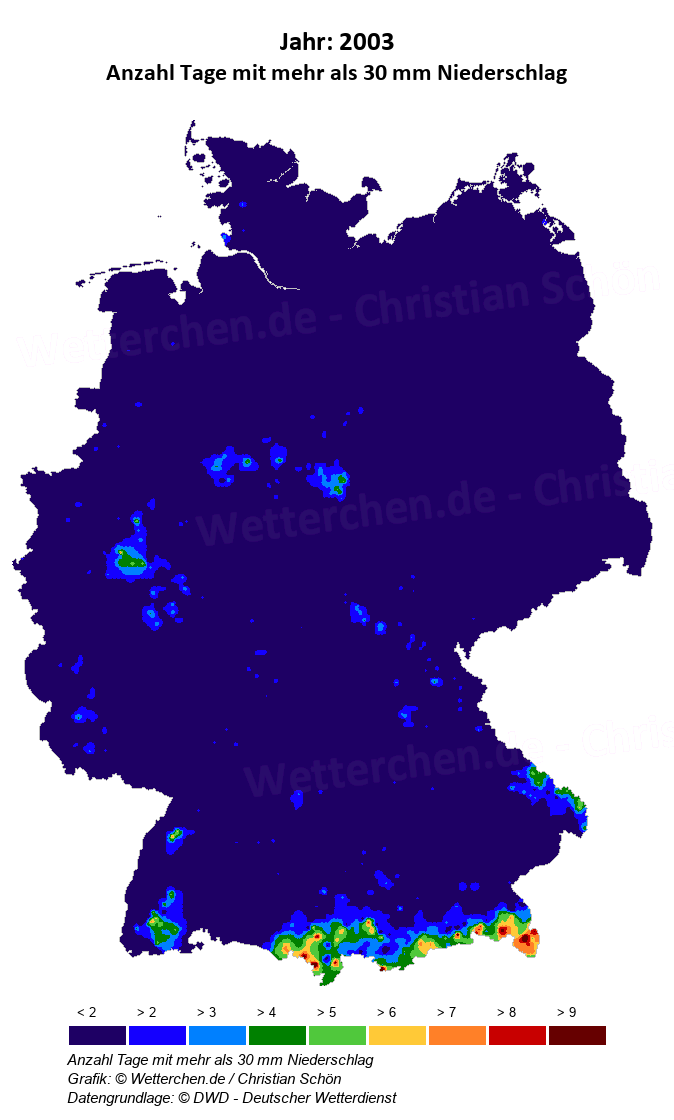 2003 - Anzahl Tage mit mehr als 30 mm Niederschlag