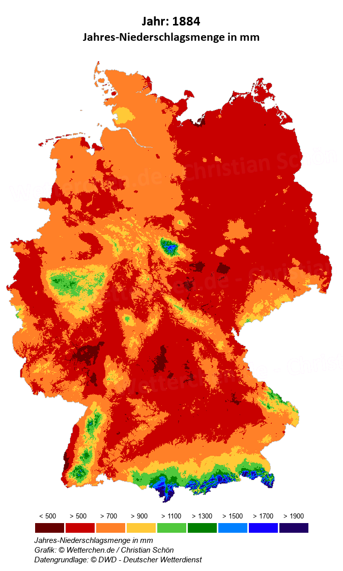1884 - Jahres-Niederschlagsmenge in mm