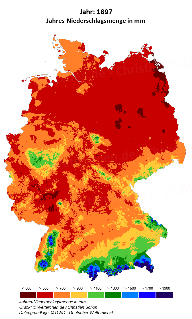 1897 - Jahres-Niederschlagsmenge in mm