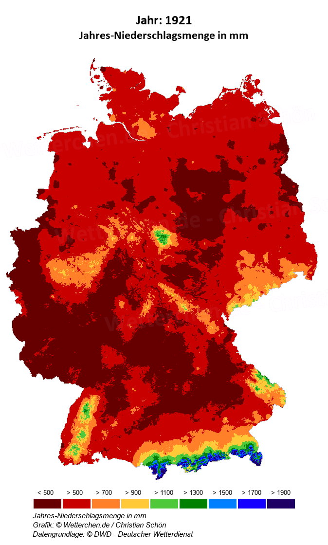 1921 - Jahres-Niederschlagsmenge in mm