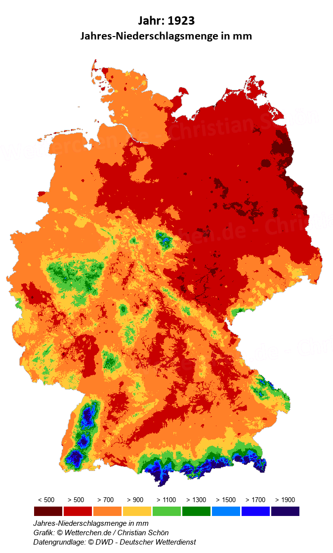 1923 - Jahres-Niederschlagsmenge in mm