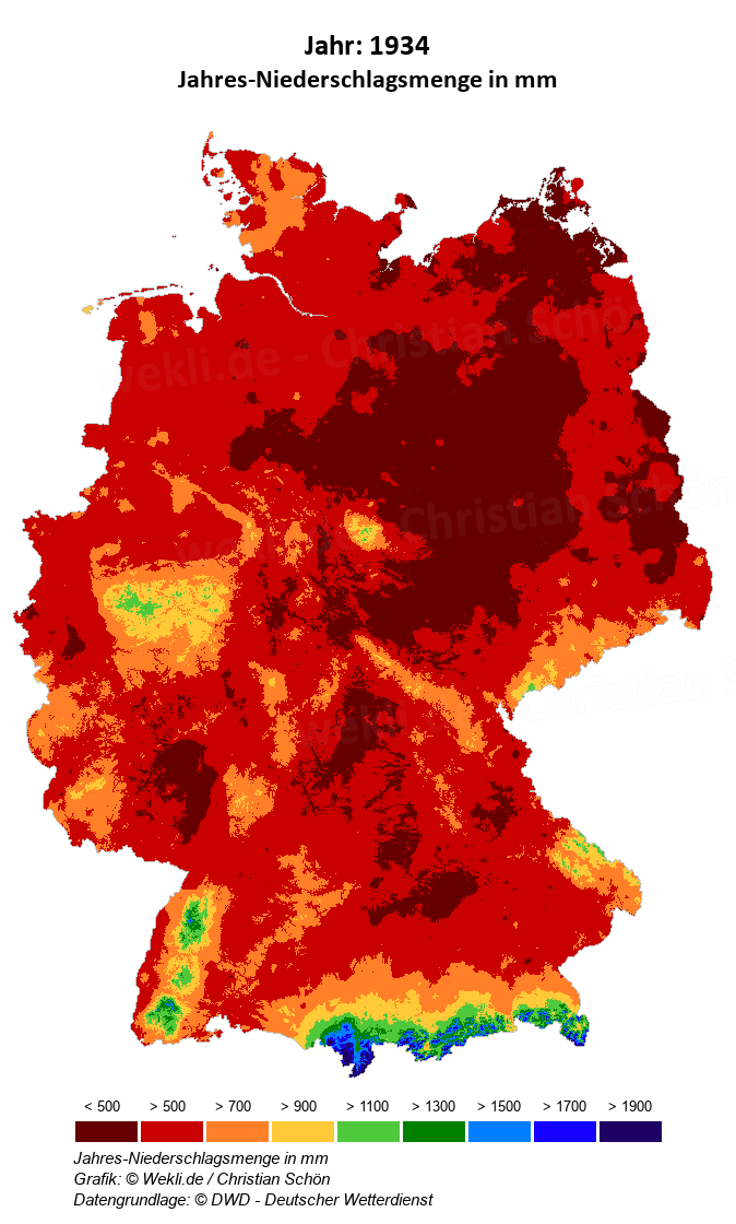 1934 - Jahres-Niederschlagsmenge in mm
