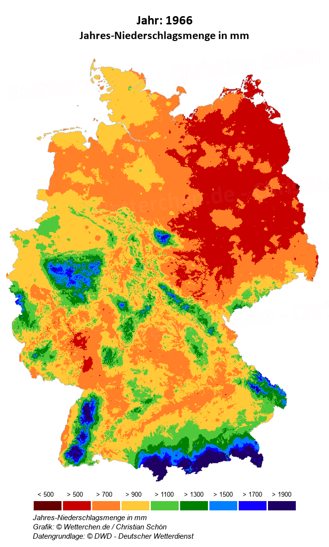 1966 - Jahres-Niederschlagsmenge in mm