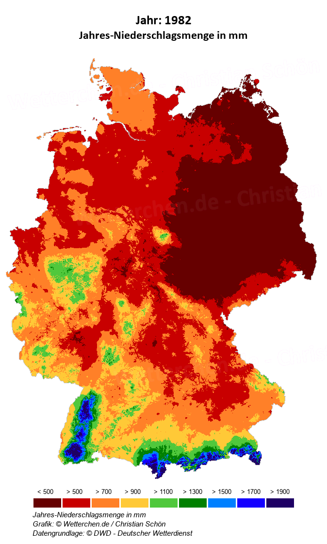 1982 - Jahres-Niederschlagsmenge in mm