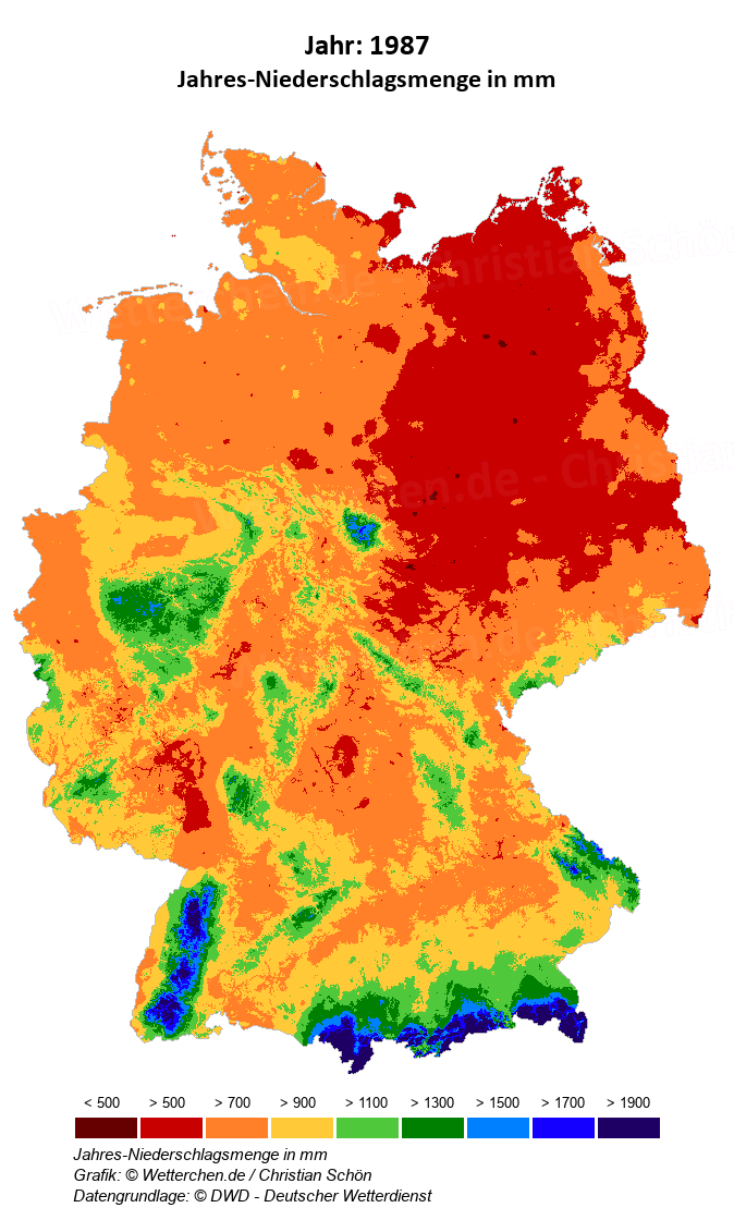 1987 - Jahres-Niederschlagsmenge in mm