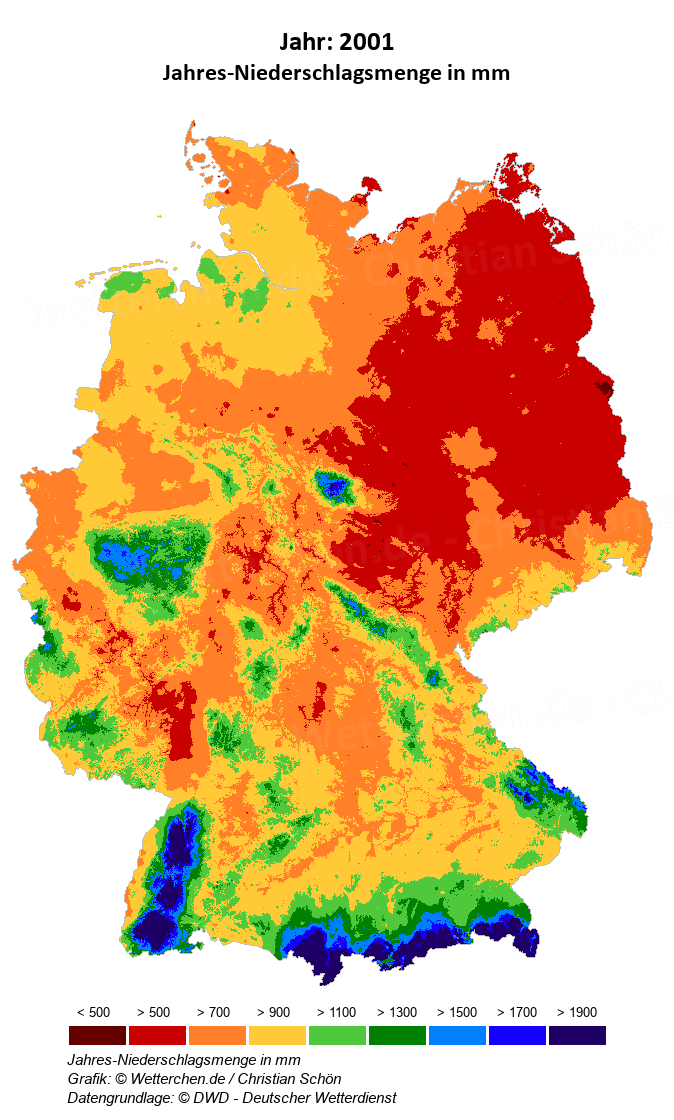 2001 - Jahres-Niederschlagsmenge in mm