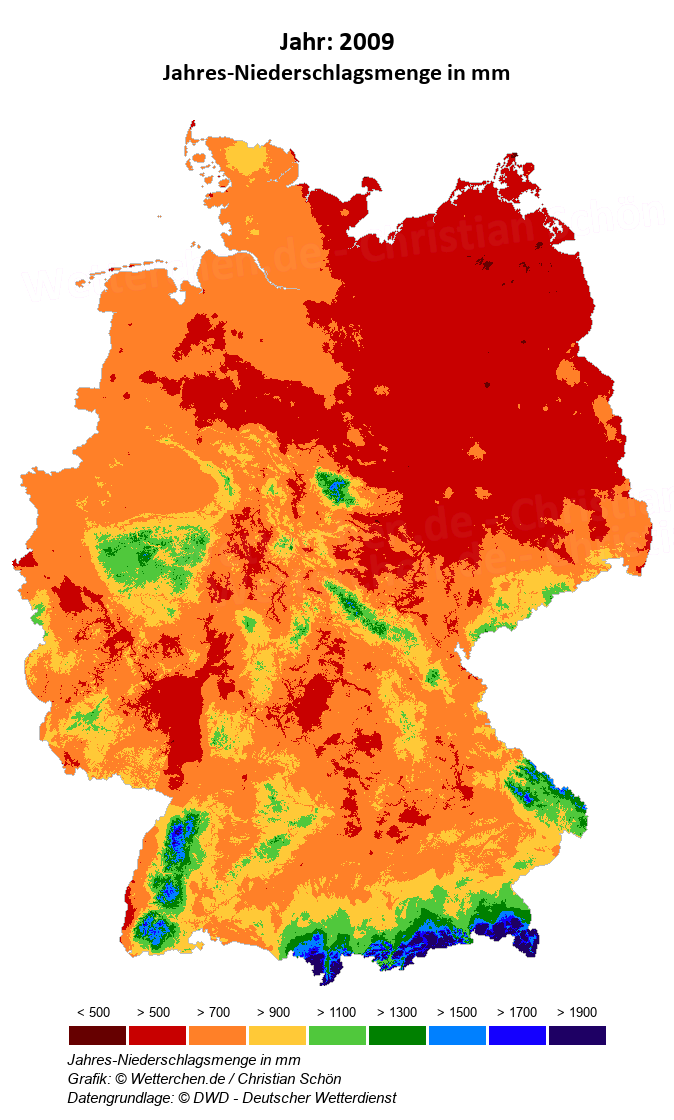 2009 - Jahres-Niederschlagsmenge in mm