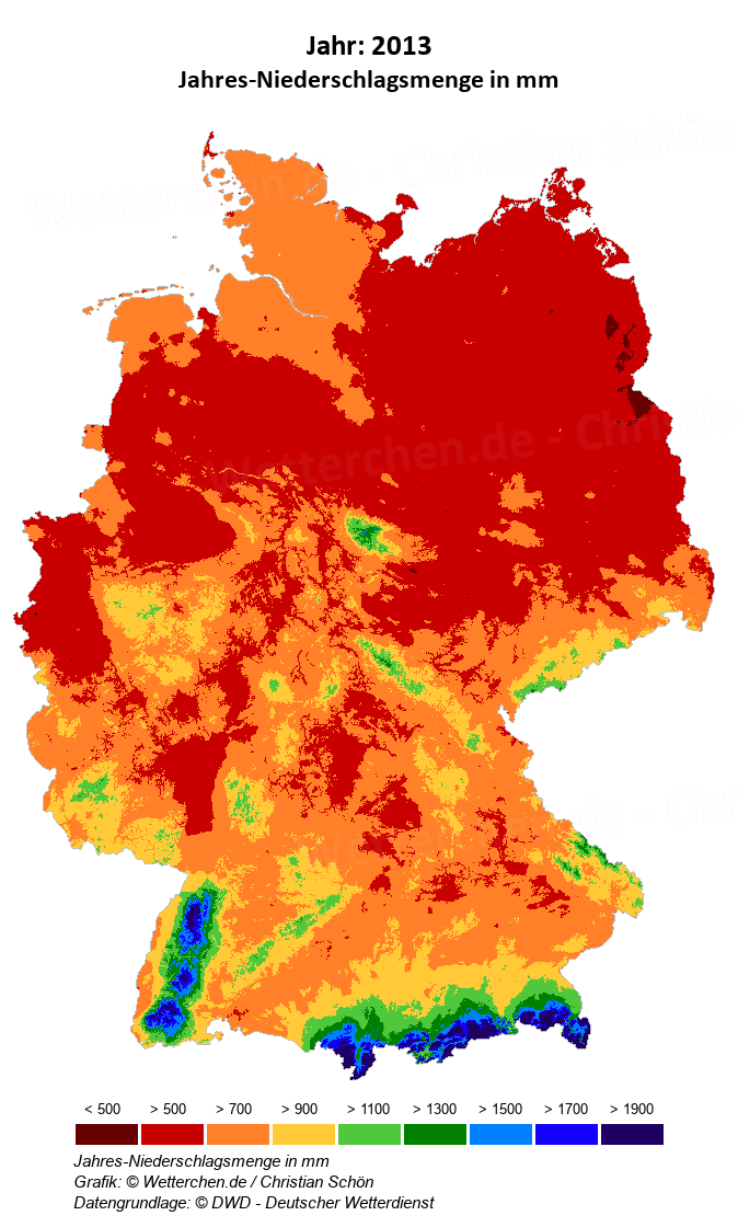 2013 - Jahres-Niederschlagsmenge in mm