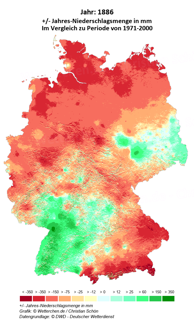 1886 - +/- Jahres-Niederschlagsmenge in mm