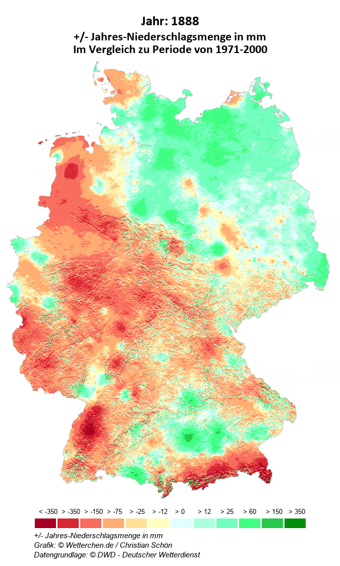 1888 - +/- Jahres-Niederschlagsmenge in mm