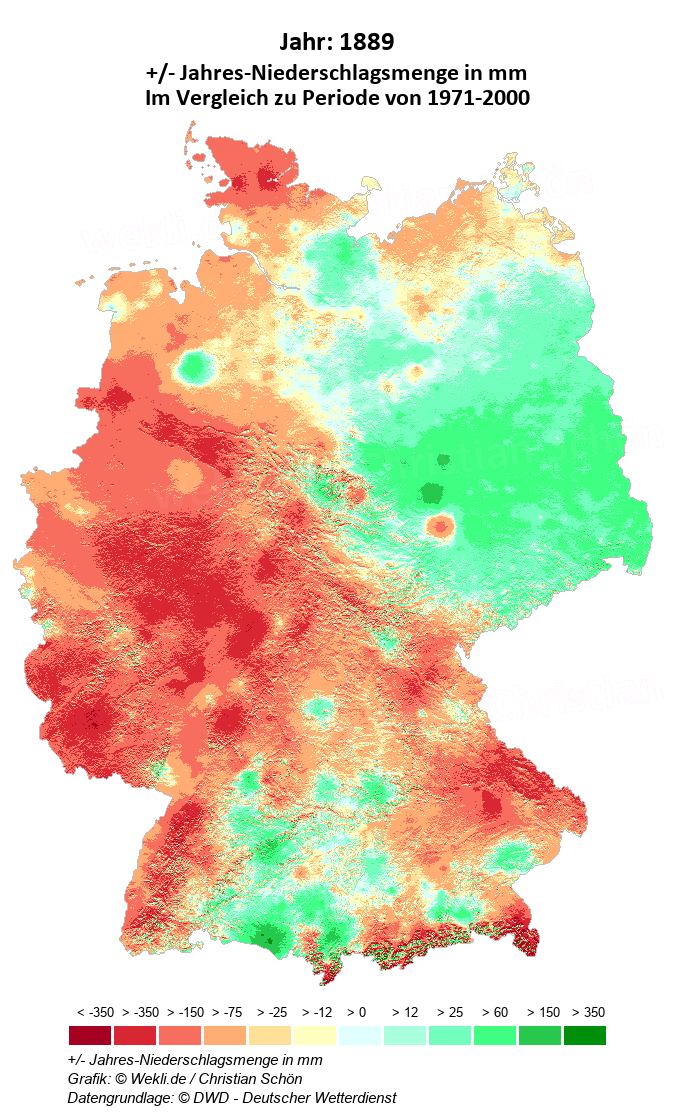 1889 - +/- Jahres-Niederschlagsmenge in mm