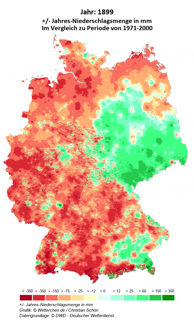 1899 - +/- Jahres-Niederschlagsmenge in mm