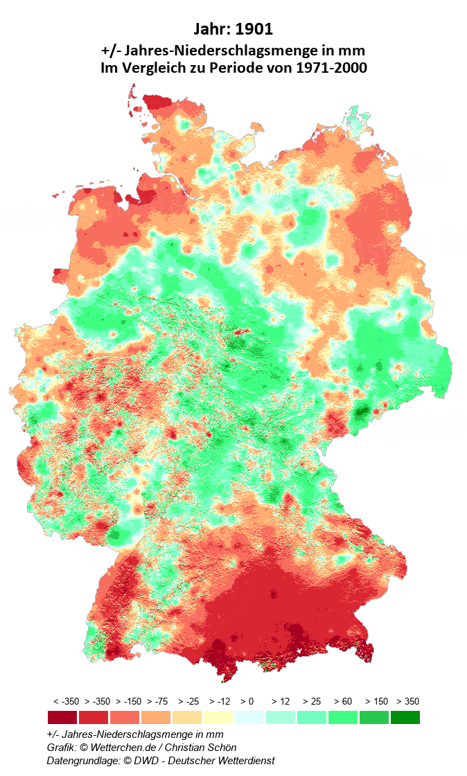 1901 - +/- Jahres-Niederschlagsmenge in mm
