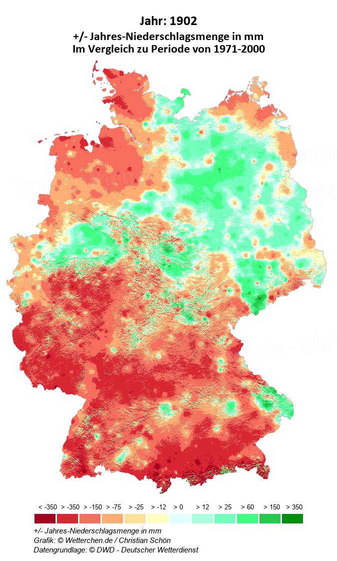 1902 - +/- Jahres-Niederschlagsmenge in mm