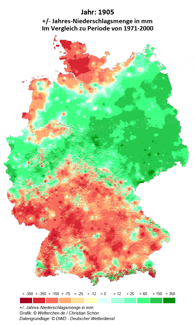 1905 - +/- Jahres-Niederschlagsmenge in mm