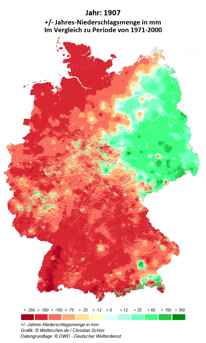 1907 - +/- Jahres-Niederschlagsmenge in mm