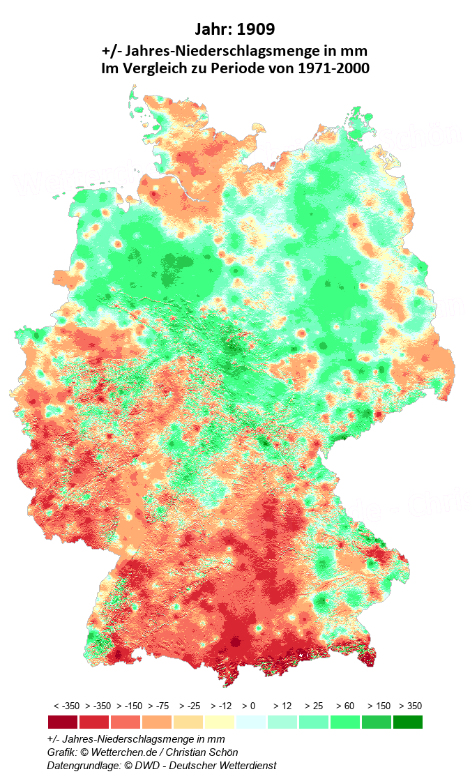 1909 - +/- Jahres-Niederschlagsmenge in mm
