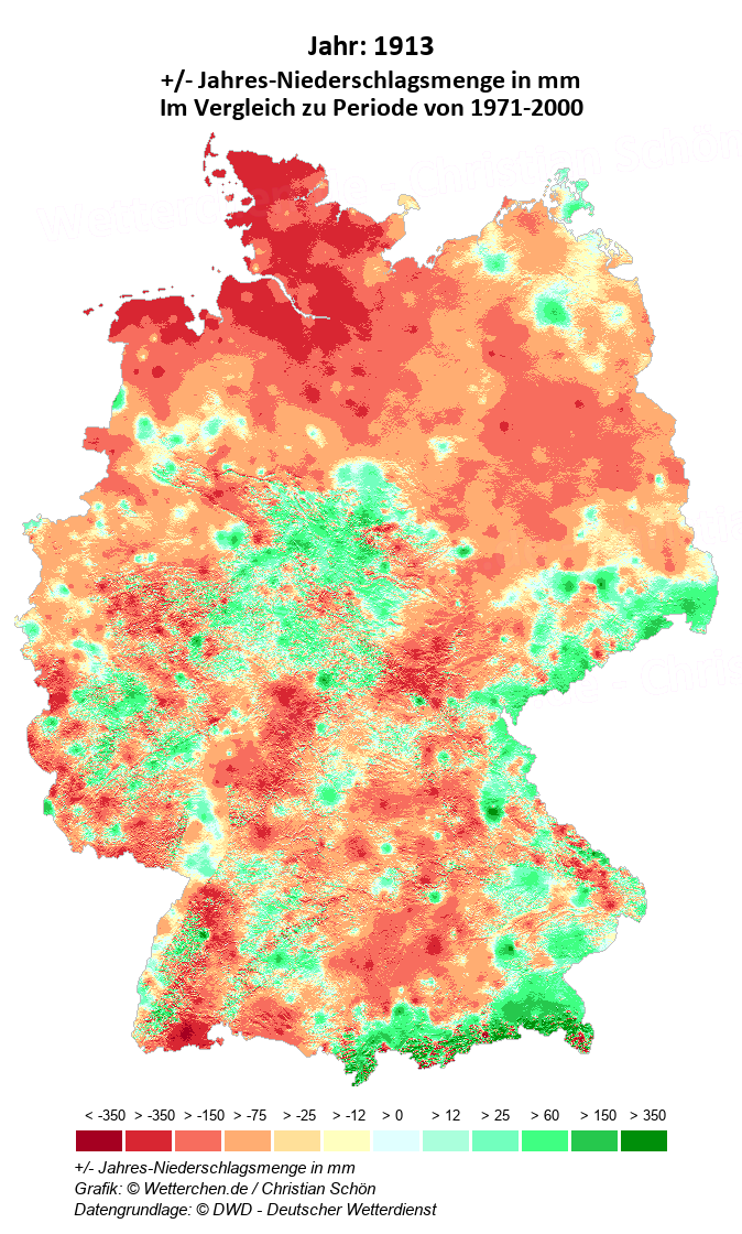 1913 - +/- Jahres-Niederschlagsmenge in mm