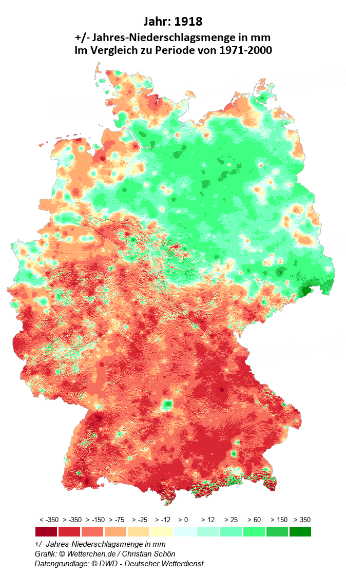 1918 - +/- Jahres-Niederschlagsmenge in mm