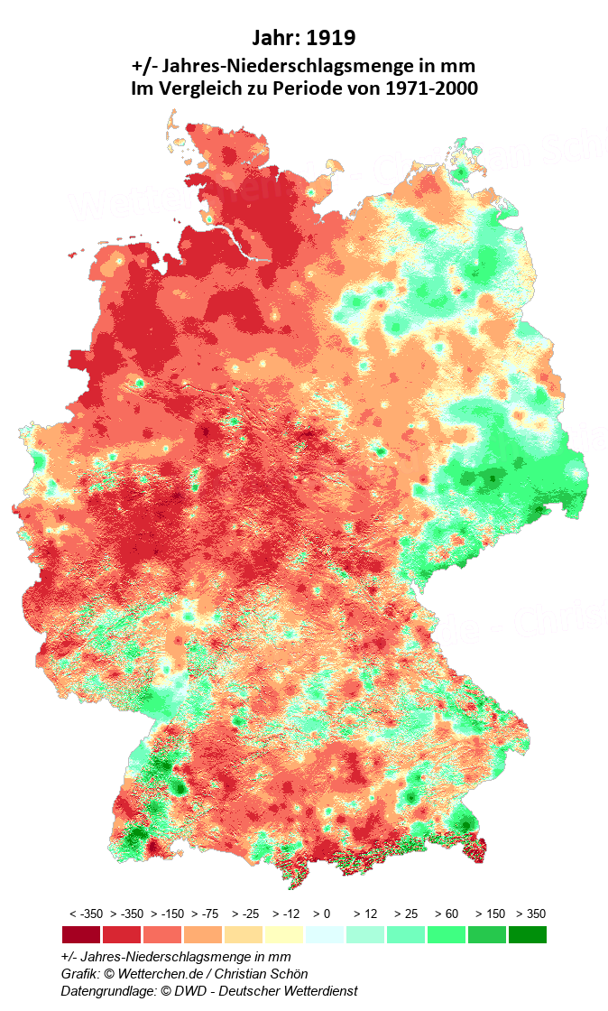 1919 - +/- Jahres-Niederschlagsmenge in mm