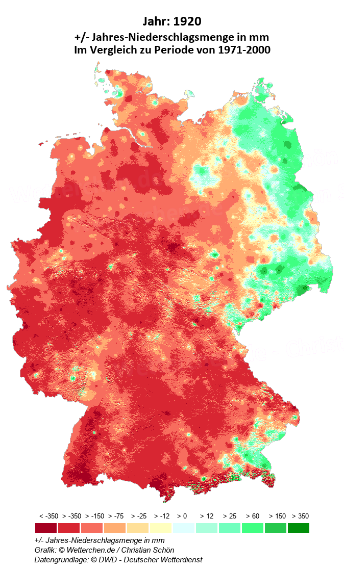 1920 - +/- Jahres-Niederschlagsmenge in mm