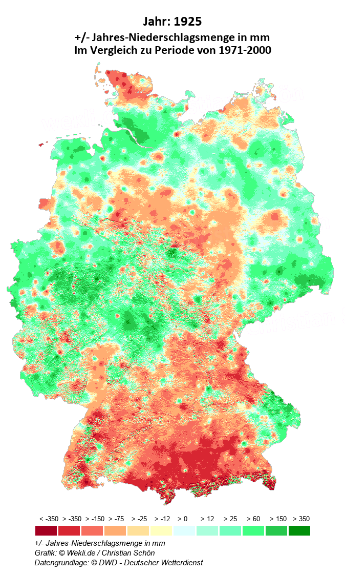 1925 - +/- Jahres-Niederschlagsmenge in mm