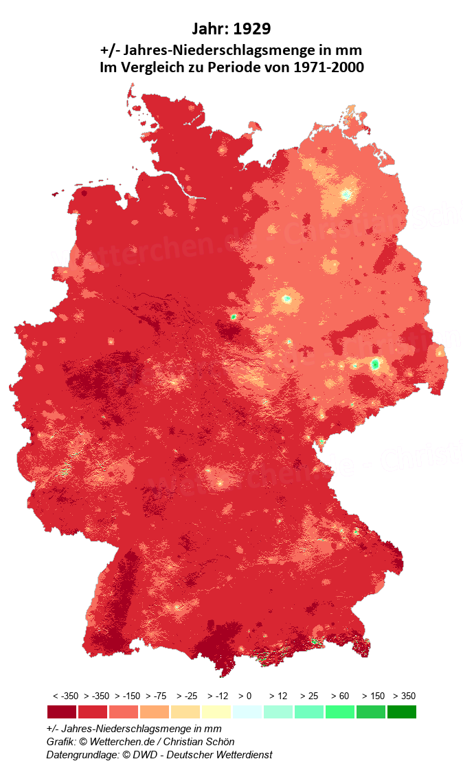 1929 - +/- Jahres-Niederschlagsmenge in mm