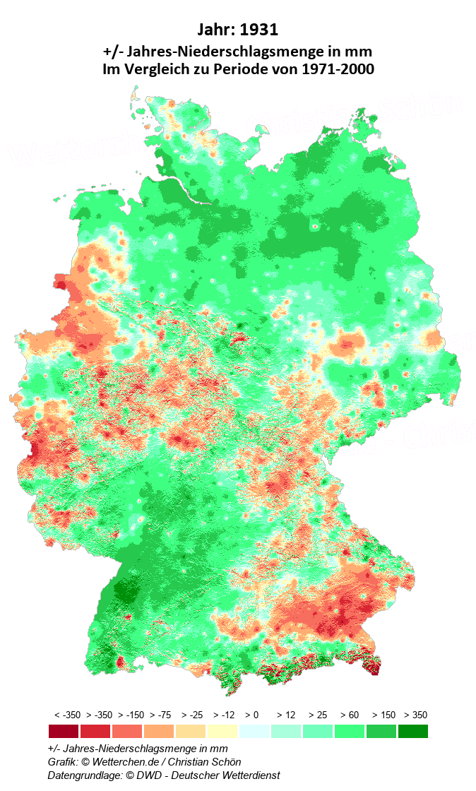 1931 - +/- Jahres-Niederschlagsmenge in mm