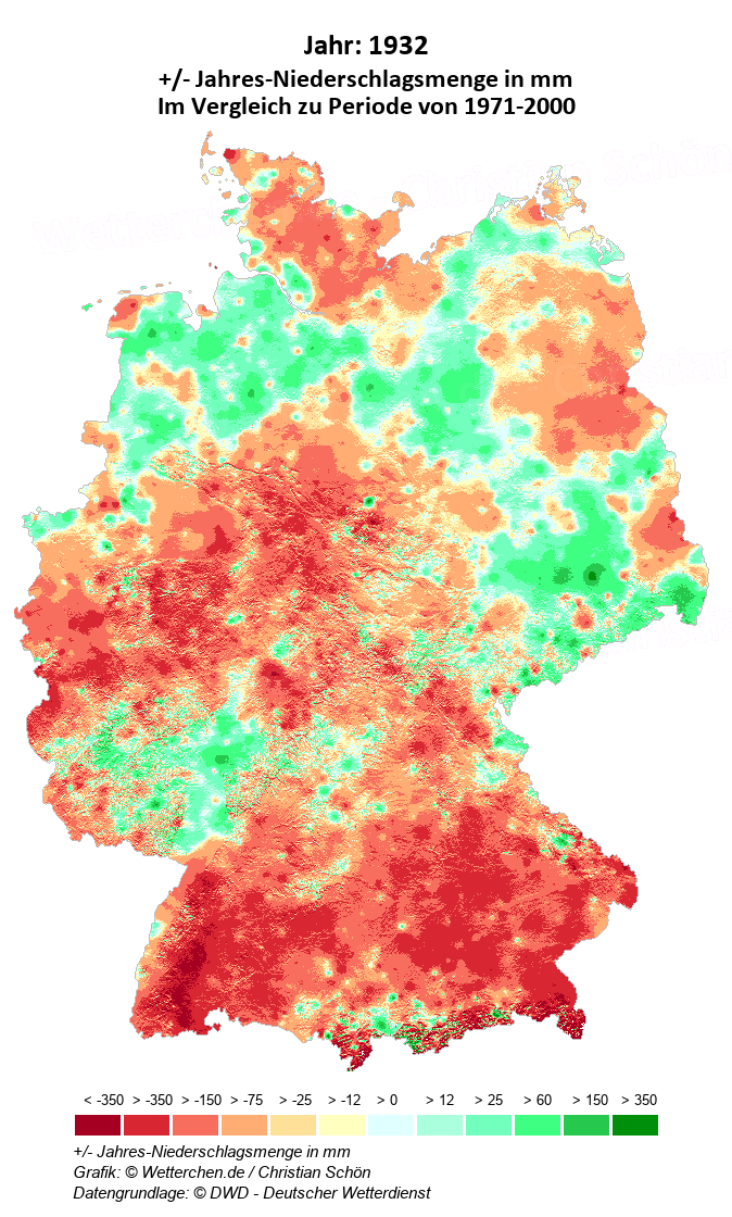 1932 - +/- Jahres-Niederschlagsmenge in mm