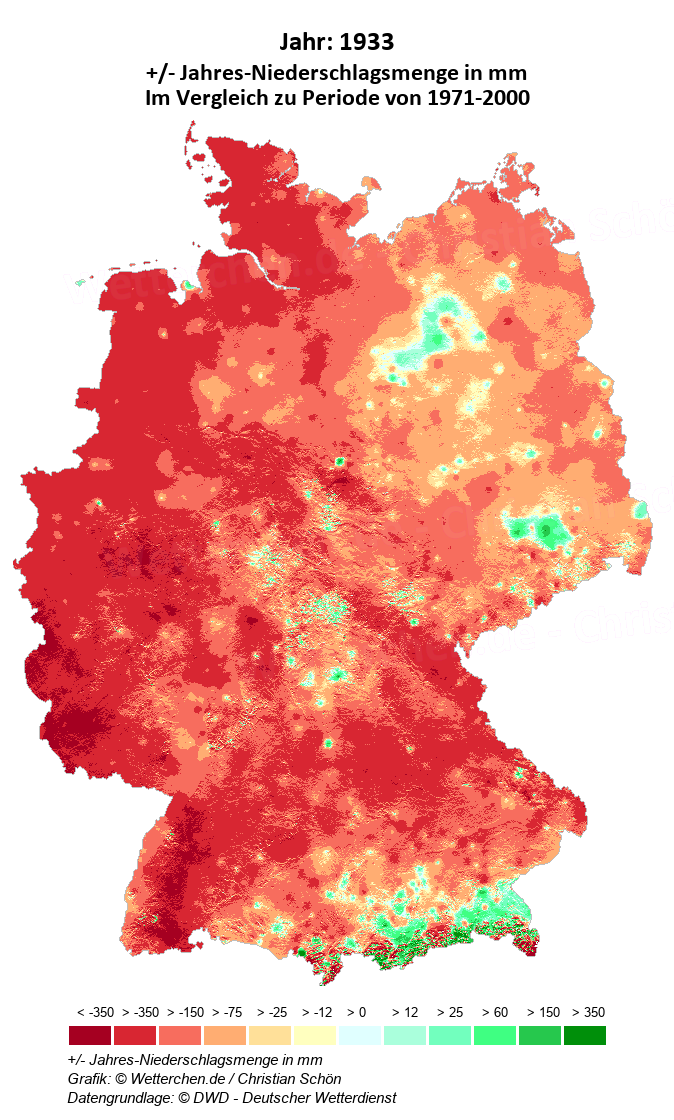 1933 - +/- Jahres-Niederschlagsmenge in mm