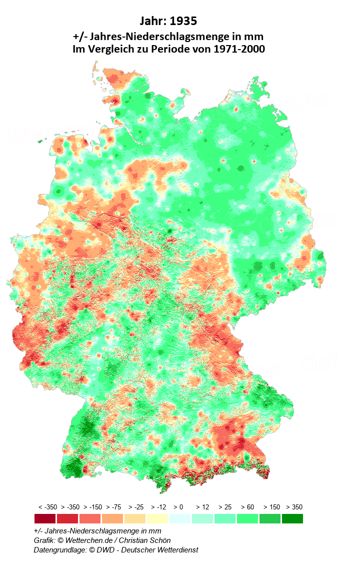 1935 - +/- Jahres-Niederschlagsmenge in mm