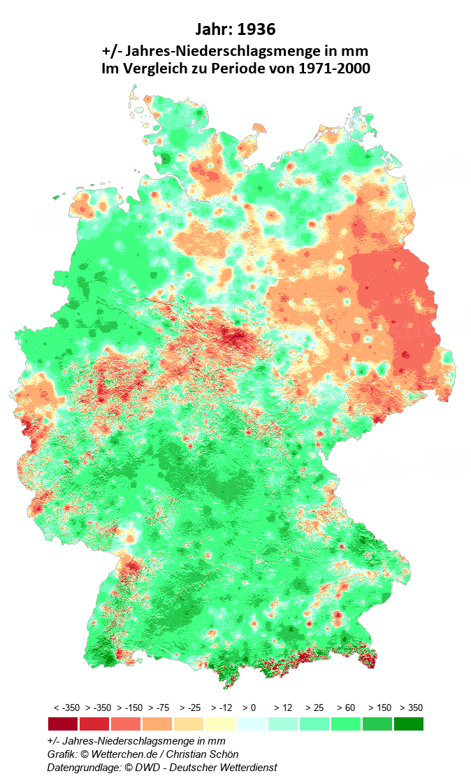 1936 - +/- Jahres-Niederschlagsmenge in mm