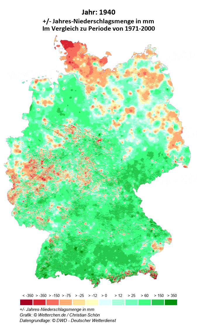 1940 - +/- Jahres-Niederschlagsmenge in mm