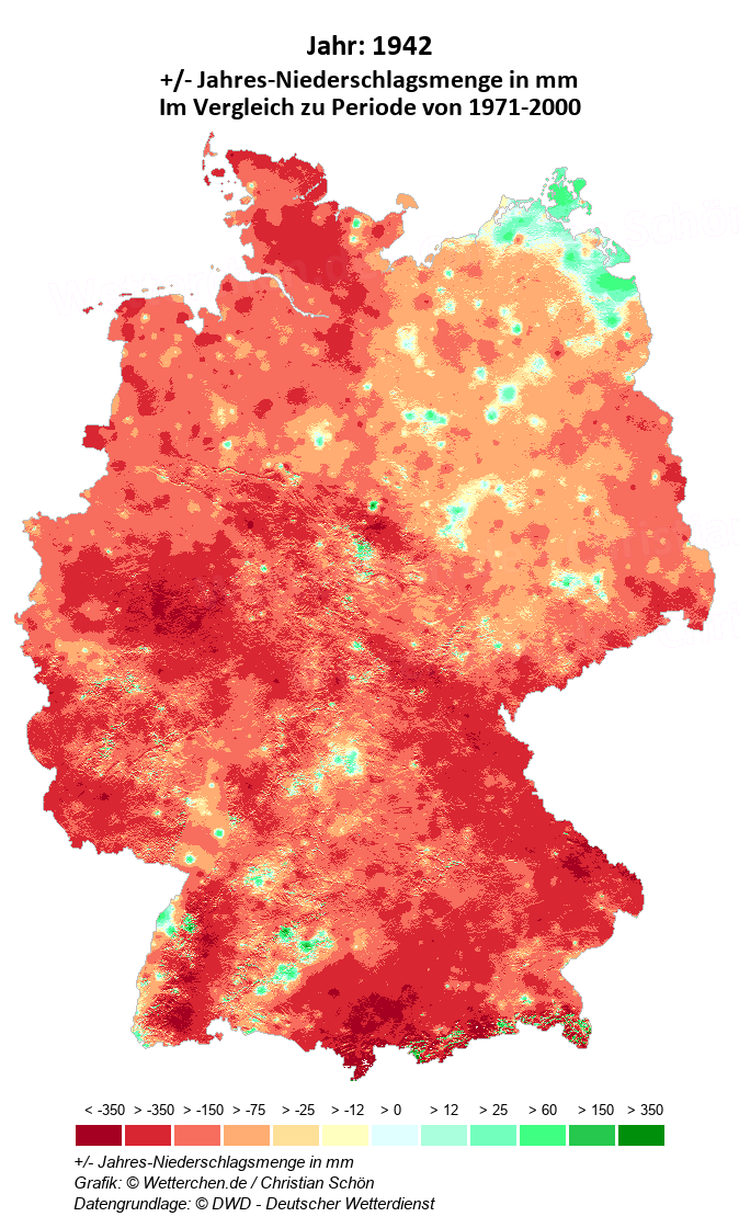 1942 - +/- Jahres-Niederschlagsmenge in mm