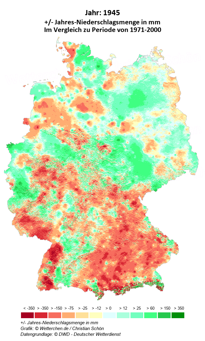 1945 - +/- Jahres-Niederschlagsmenge in mm