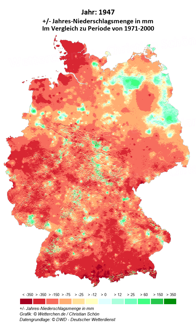 1947 - +/- Jahres-Niederschlagsmenge in mm