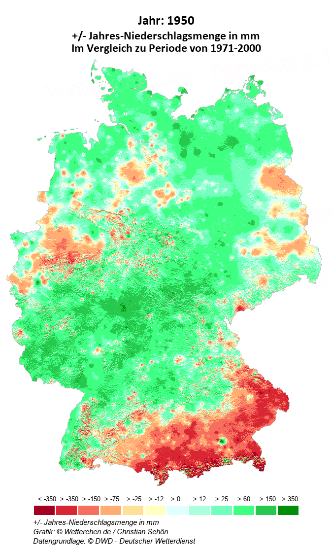 1950 - +/- Jahres-Niederschlagsmenge in mm